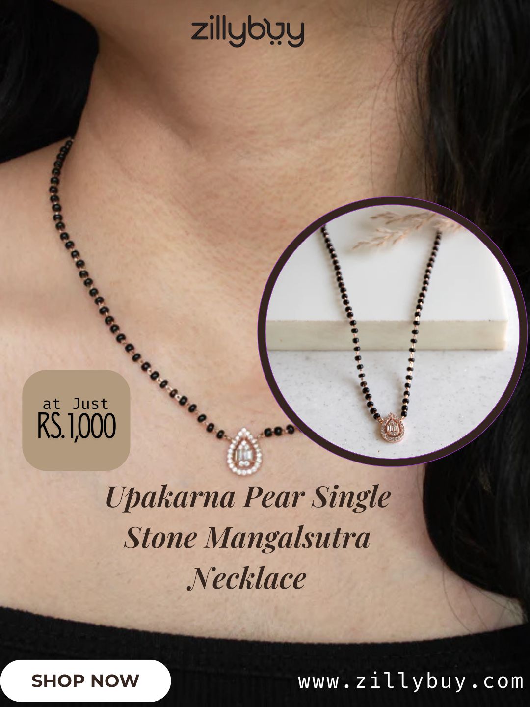 Shop trending upakarna pear single-stone mangalsutra online in lucknow. sleek, lightweight, and specially made for daily wear at just Rs.1,000. Discover timeless beauty at ZillyBuy today. For more information, visit our official website.