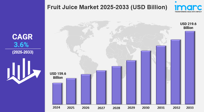 - Fruit Juice Market Size (2024): Valued at USD 159.6 Billion.