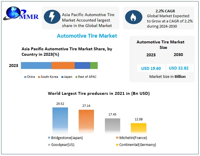 Maximize Market Research is a Business Consultancy Firm that has published a detailed analysis of the “Automotive Tire Market”. The report includes key business insights, demand analysis, pricing analysis, and competitive landscape. The analysis in the report provides an in-depth aspect at the current status of the Automotive Tire market, with forecasts outspreading to the year 2030.