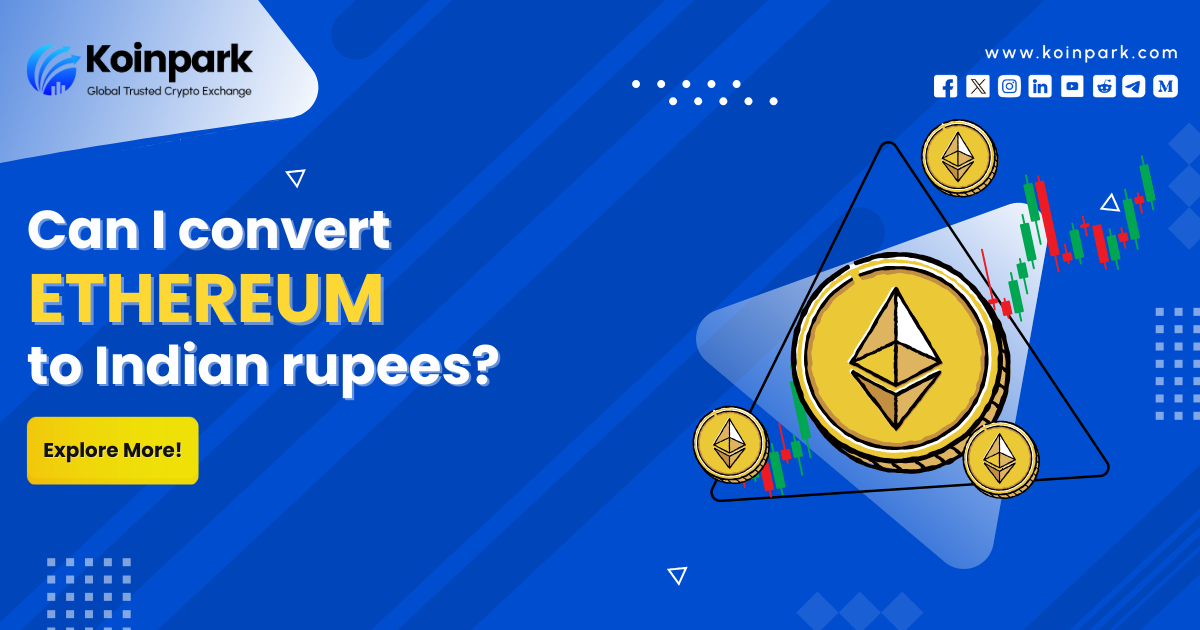 To convert Ethereum to Indian Rupees, you'll need to use a cryptocurrency exchange that supports the trading pair ETH/INR. Popular exchanges like Koinpark (FIU-Registered cryptocurrency exchange platform) offer this pairing.