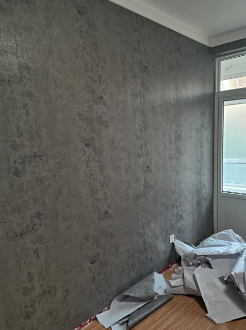 I bought this concrete wallpaper. The grey looks good and it was peel and stick. It looks good as for now. And the color is darker than expected. Seems I got a good deal.