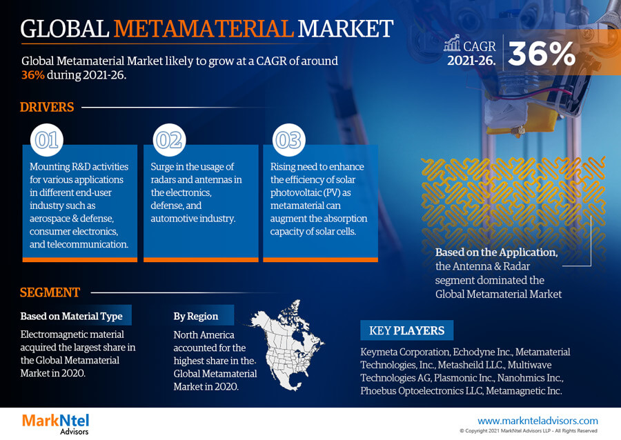 MarkNtel Advisors has recently published the research report presenting relevant and valuable data on Global Metamaterial Market. The report offers a broad overview of the most recent data and forecasts for the market in question. The research emphasizes the important players and the most recent business tactics, such as the introduction of new goods and services, partnerships, joint ventures, technology, industry and regional segmentation, profit and loss ratios, and investment suggestions. This perceptive market research report focuses on industry trends, top companies, supply chain trends, technical advancements, significant events, and future plans. By evaluating key geographies, the research examines every facet of this extensive business and is an invaluable resource for current participants, potential newcomers, and investors in the future. The entire contents of the report are updated frequently to help us better understand the market. The study also discusses typical marketing hazards in such a delicate industry and offers suggestions for future planning for business expansion.