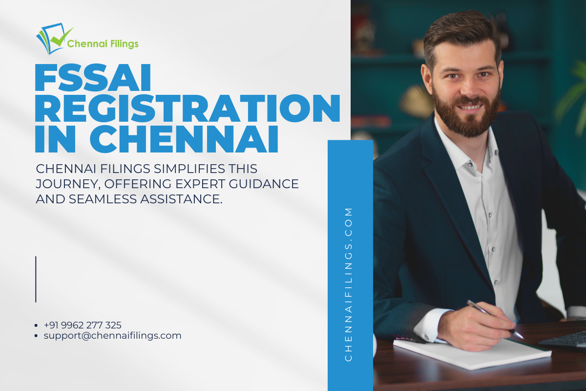 Embark on a journey of compliance and credibility with FSSAI registration facilitated by Chennai Filings. Operating in Chennai's bustling food industry requires adherence to stringent regulations, and FSSAI registration is paramount. Our expert team navigates you through the intricacies, ensuring a seamless registration process. With FSSAI certification, your food business gains trust, expanding opportunities in a competitive market. Chennai Filings' comprehensive services alleviate the burden, offering end-to-end assistance tailored to your business needs. Embrace legality and trustworthiness; partner with Chennai Filings for hassle-free FSSAI registration in Chennai. Let's pave the path to your culinary success together.