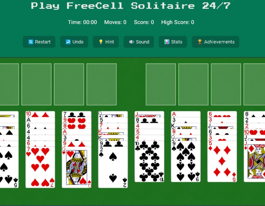 Delight in the enjoyment of Freecell Solitaire today. Offering no downloads, no expense, and limitless amusement, it serves as an ideal means to unwind, stimulate your intellect, and relish a classic game at any time and place. Commence play immediately!