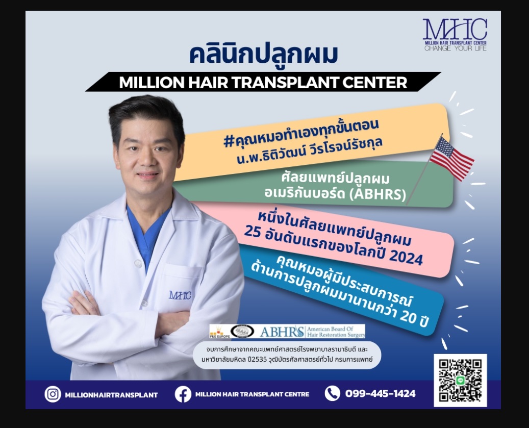 At Million Hair Transplant Center (MHC) in Bangkok, Thailand, we understand the profound impact that hair loss can have on an individual's self-confidence and overall well-being. That's why we are dedicated to providing world-class hair transplant solutions that deliver natural-looking, long-lasting results. Pioneering Hair Transplant Techniques: FUE and FUTOur experienced team of hair transplant specialists offers two cutting-edge techniques to address your hair restoration needs: Follicular Unit Extraction (FUE) and Follicular Unit Transplantation (FUT). Both methods are meticulously performed to ensure the highest level of precision and natural-looking outcomes. Get more information about hair transplant
