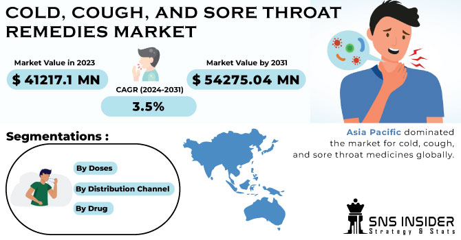 The Cold, Cough, and Sore Throat Remedies Market size was estimated at USD 41217.1 million in 2023 and is expected to reach USD 54275.04 million by 2030 at a CAGR of 3.5% during the forecast period of 2024-2031.The market for cold, cough, and sore throat remedies has experienced significant growth in recent years, driven by a combination of increasing consumer awareness about health, a rise in the prevalence of respiratory infections, and the growing preference for over-the-counter medications. This market encompasses a wide array of products, including syrups, lozenges, nasal sprays, and herbal supplements, catering to diverse consumer needs. Innovations in product formulations, such as sugar-free options and natural ingredient-based solutions, have further fueled market expansion. Additionally, the advent of e-commerce has made these products more accessible, contributing to their rising demand. Amidst the seasonal fluctuations and the ongoing challenges posed by new viral strains, the market remains dynamic and highly competitive, with major pharmaceutical companies and emerging players alike striving to capture market share through strategic marketing and product differentiation.