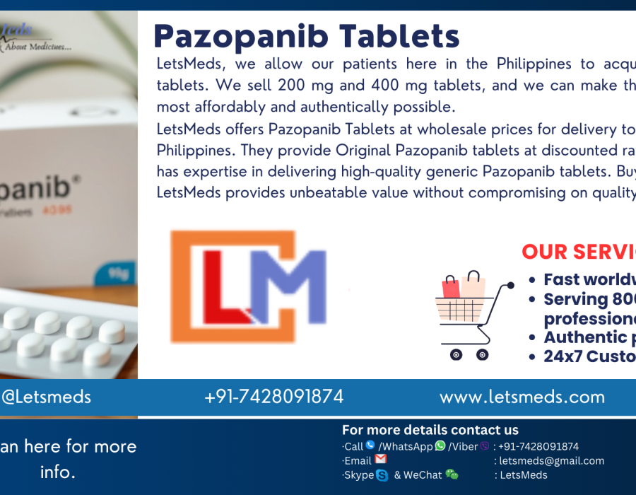 Pazopanib is already an established medication and is prescribed as a treatment for advanced renal cell carcinoma, kidney cancer, and also some soft tissue sarcomas. At LetsMeds, we allow our patients in the Philippines and even those in Metro Manila to acquire Pazopanib tablets. We sell 200 mg and 400 mg tablets, and we can make them obtain this most affordably and authentically possible.