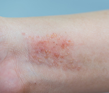 This type of rash occurs when the skin comes into contact with an allergen or irritant. It results in red, itchy patches that can become swollen and blistered.