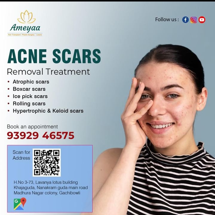 Revitalize Your Skin with Acne Scar Removal Treatment in Gachibowli, Hyderabad, at Ameyaa Clinic. As a premier destination for skincare solutions, we specialize in advanced treatments to diminish acne scars and restore smooth, radiant skin. Our experienced dermatologists utilize state-of-the-art techniques and personalized approaches to address various types of acne scars effectively. Whether you struggle with pitted scars, hyperpigmentation, or uneven texture, trust us to tailor a treatment plan to your specific needs. With a commitment to excellence and patient satisfaction, we strive to help you achieve clearer, healthier skin and renewed confidence. Schedule your consultation today and embark on your journey to skin rejuvenation at Ameyaa Clinic.