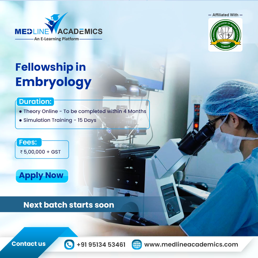 To know more details like the embryology course fees, detailed curriculum, Visit our website www.medlineacademics.com