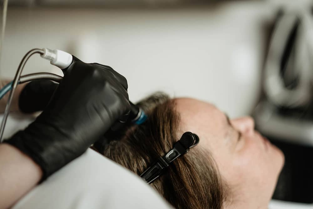 - Cleansing and Exfoliation: The treatment begins by using a specialized device that cleanses the scalp, removing excess oil, dead skin cells, and other impurities. This step unclogs the hair follicles and prepares the scalp for further treatment.