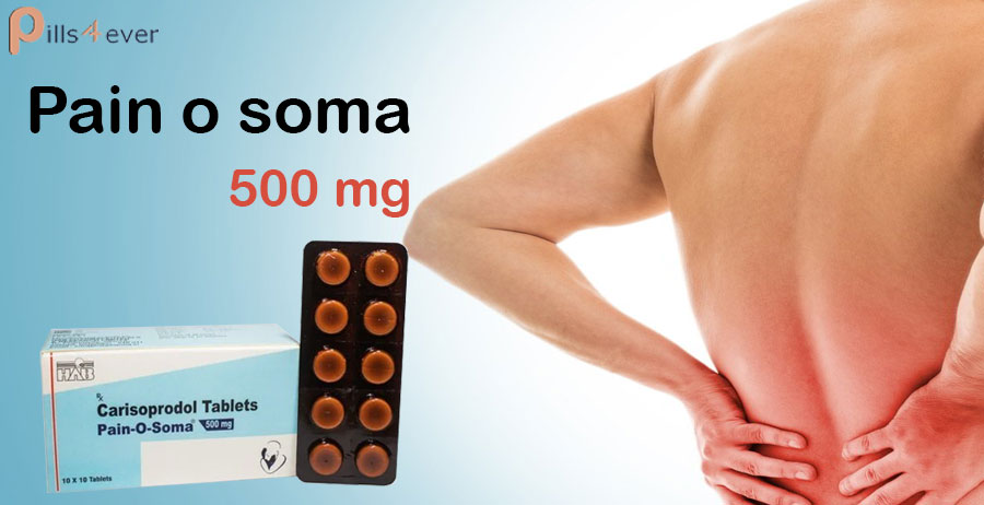 Pain o soma 500 Carisoprodol capsules is prescription drug treatment for Pain alleviation caused by muscular discomfort. It is prescribed for relaxing muscular pain that arises due to positive acute situations.
