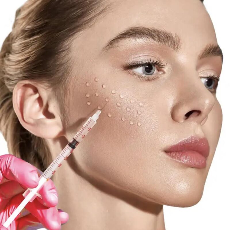 Using very fine needles, the booster solution (often containing hyaluronic acid) is carefully injected into multiple areas across the face, neck, or hands. These micro-injections deliver hydration deep into the skin layers where creams and serums cannot reach.