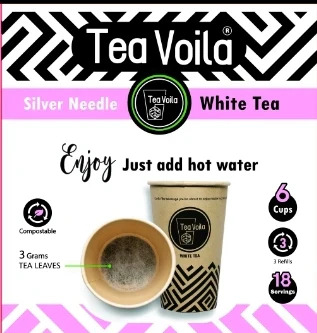 TeaVoila takes pride in its sustainable approach, offering Silver Needle White Tea in biodegradable, pre-filled cups.