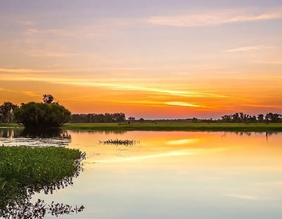 The early morning hours are a magical time to photograph Kakadu’s still waters, with mist rising off the billabongs and the soft golden hues of the sunrise reflecting on the surface. One of the top photographic spots is Yellow Water Billabong, where wildlife, particularly saltwater crocodiles, often comes into view as the day begins. The ethereal morning light makes for striking images of the surrounding wetlands, framed by the silhouettes of native trees.