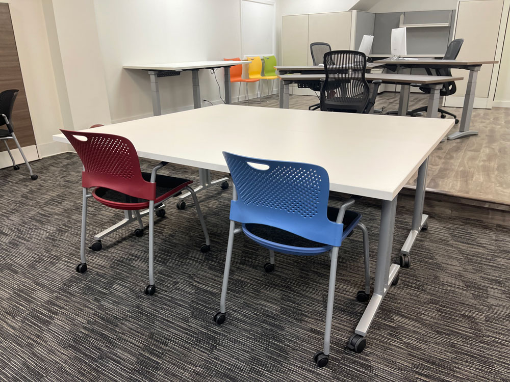 The Flexible design makes it possible to easily reposition these units and combine or split them to form workspaces that are movable for collaboration, individual work, or informal conversation. This flexibility is very significant for the current hybrid work environment, where there is a growing need to reuse the space for both the workers who come to the office and those who are working offsite.