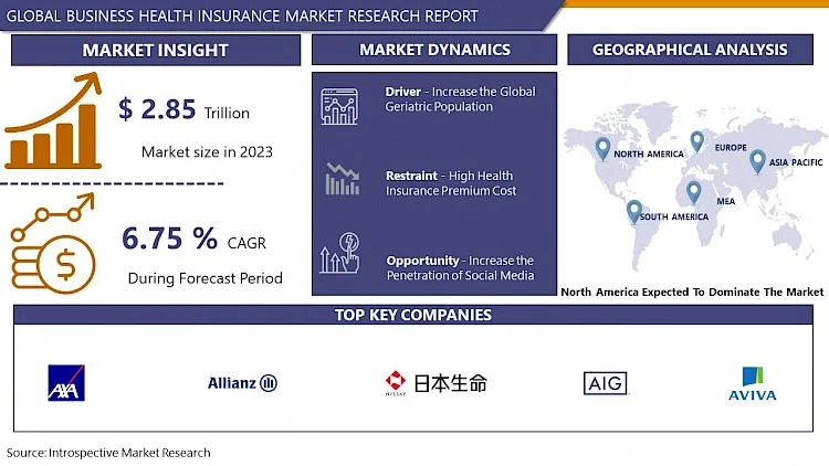 The global Business Health Insurance Market Size Was Valued at USD 2.85 Trillion in 2023 and is Projected to Reach USD 5.13 Trillion by 2032, Growing at a CAGR of 6.75% From 2024-2032.