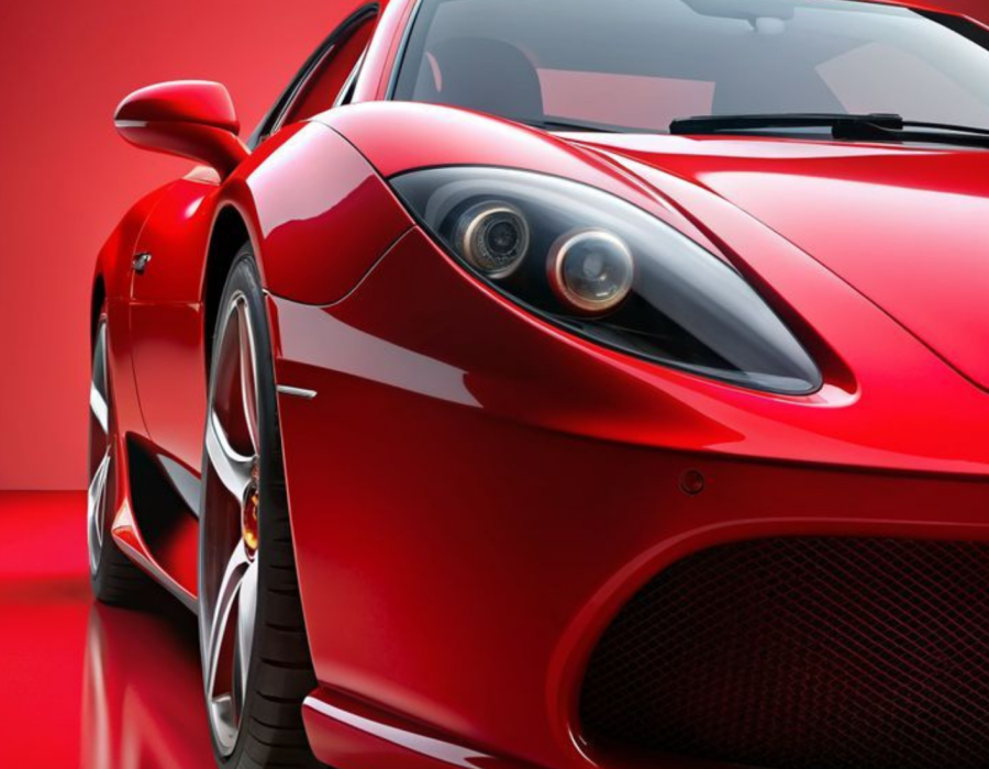 The red fast car looks thrilling and powerful