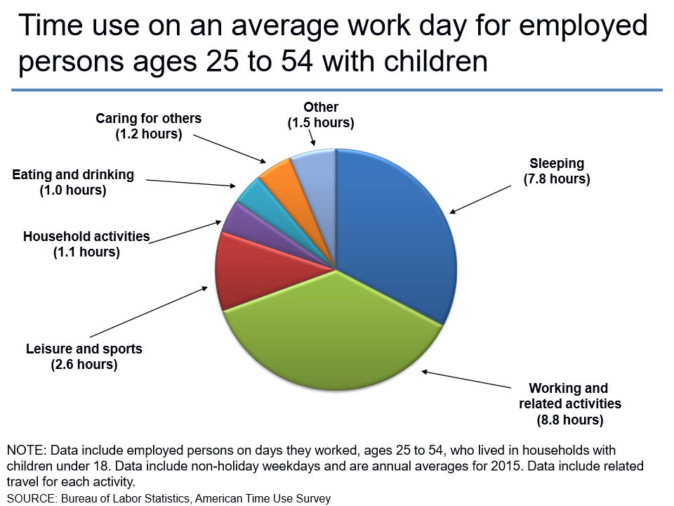 Time use on an average work day for employed persons ages 25 to 54 with children
