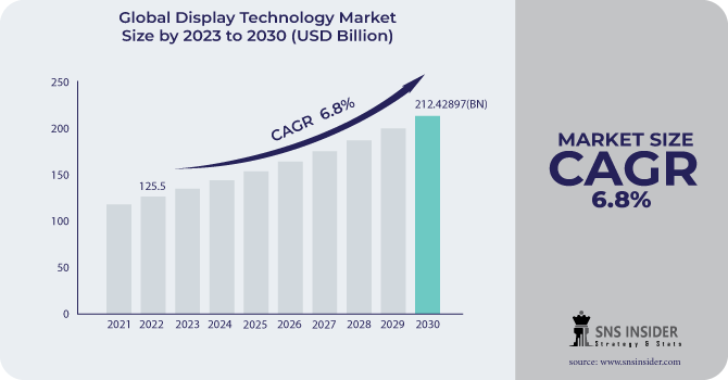 The Display Technology Market size was valued at $ 125.5 Bn in 2022 and is expected to grow to $ 212.42897 Bn by 2030 and grow at a CAGR Of 6.8 % by 2023-2030.