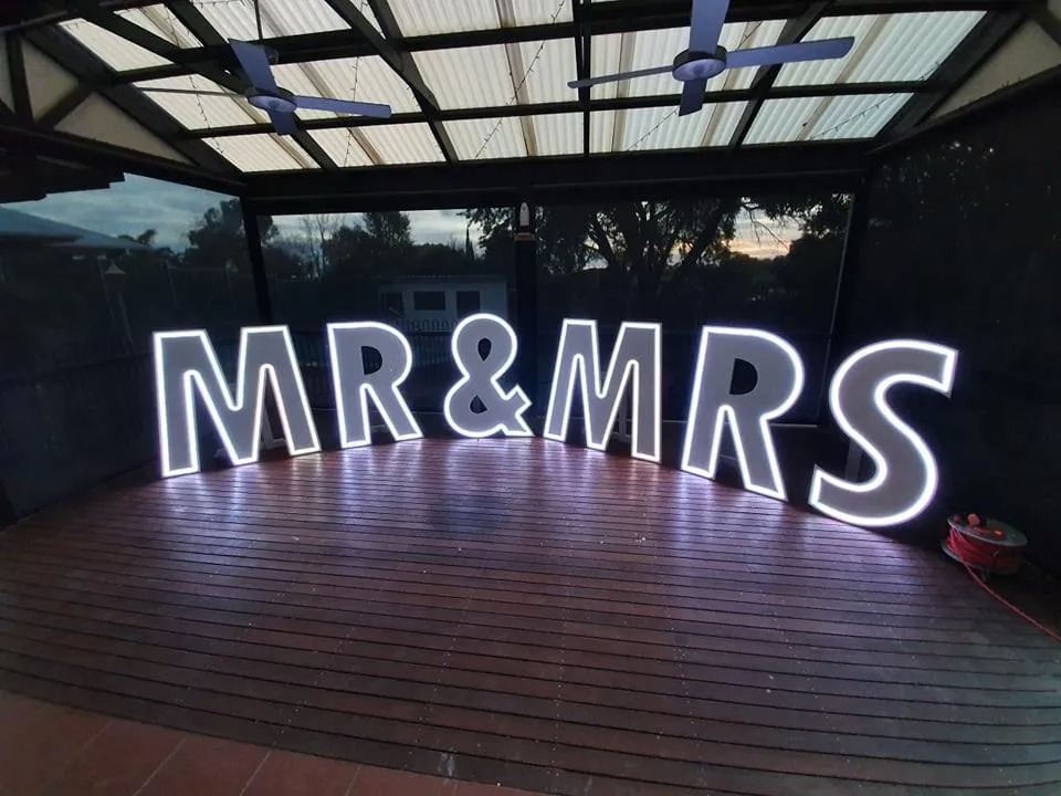 Your event deserves personalization. Our LED sign hire options include custom designs that let you express your story — your way. Whether you want a glowing “Mr & Mrs” sign, your business name in lights, or a fun phrase like “Let’s Party,” we create it with precision and flair.