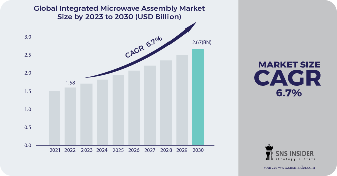 Integrated Microwave Assembly Market Size was valued at $ 1.58 bn in 2022 and is expected to reach $ 2.67 bn by 2030, and grow at a CAGR of 6.7% by 2023-2030.