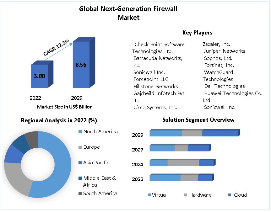 Market Value :The Global Next-Generation Firewall Market is poised for explosive growth, with an expected CAGR of 12.3% throughout the forecast period, culminating in a market value of nearly US$ 8.56 billion by 2029. This report offers a comprehensive analysis of the current and future prospects of the market, amalgamating primary and secondary research to provide insights into market size, dynamics, and forecasts across various segments and sub-segments, taking into account macro and micro environmental factors.