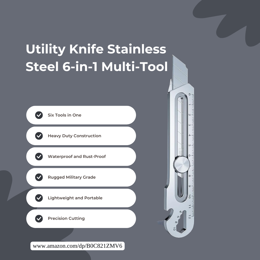 Utility Knife Stainless Steel 6 in 1 Multi Tool Heavy Duty Waterproof Rust Proof Rugged Military Grade Snap Off 18mm Cutter Lightweight Box Arts Crafts Leather Painters Construction Wallpaper.