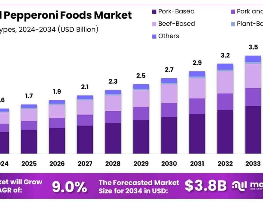 The global pepperoni foods market was valued at approximately USD 1.6 billion in 2024. With a robust forecasted compound annual growth rate (CAGR) of 9.0%, it’s expected to nearly double to reach USD 3.8 billion by 2034.
