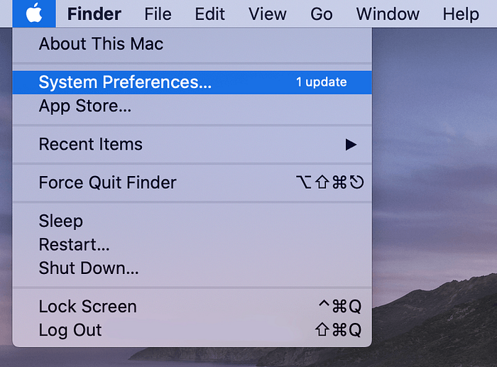 - Then, go to the Apple menu and select System Preferences.
