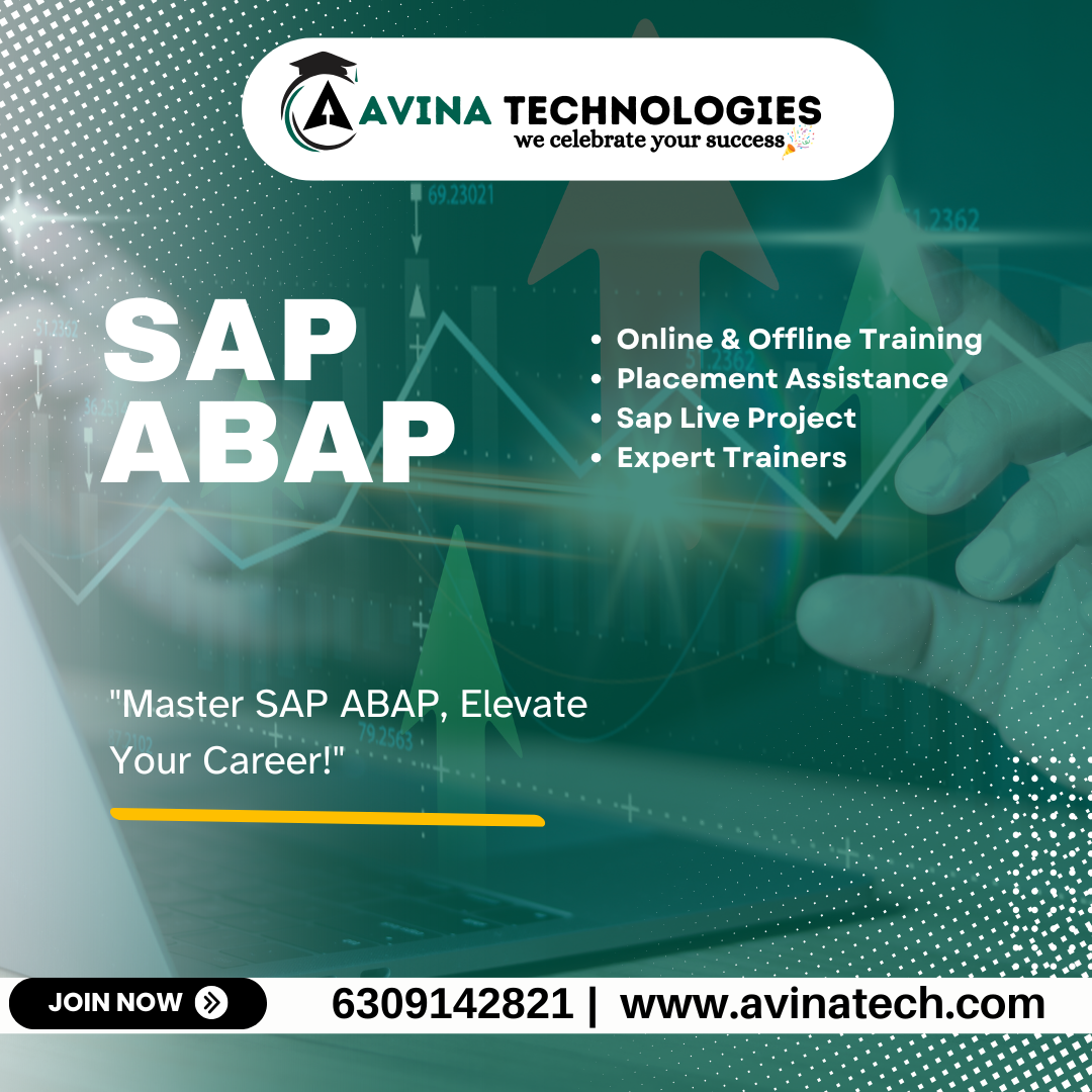 Avina Technologies is acclaimed as the, providing comprehensive programs that are meticulously designed to build your expertise in SAP ABAP development. Our SAP ABAP training in Hyderabad offers flexibility, allowing you to learn at your own pace, whether through online or classroom sessions. Our training is led by industry experts who guide you through real-world projects, ensuring you gain practical, hands-on experience that directly applies to the professional landscape. With a focus on both foundational and advanced concepts, our course prepares you to excel in SAP ABAP development and opens doors to lucrative career opportunities in top organizations. Join Avina Technologies and elevate your SAP ABAP skills with the best training in Hyderabad.