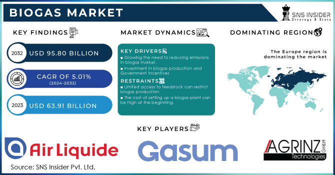 According to the SNS Insider report, the Biogas Market Size was valued at USD 63.91 billion in 2023 and is expected to reach USD 95.80 billion by 2032 and grow at a CAGR of 5.01% over the forecast period 2024-2032. The Biogas Market is a vital component of the renewable energy sector, providing a sustainable way to produce energy while minimizing environmental impact. Derived from the breakdown of organic matter like agricultural waste, animal manure, and food scraps, biogas offers a promising solution for reducing greenhouse gas emissions and diversifying our energy sources. As the world becomes increasingly aware of climate change and the need for cleaner energy options, the biogas market has gained significant attention and momentum.