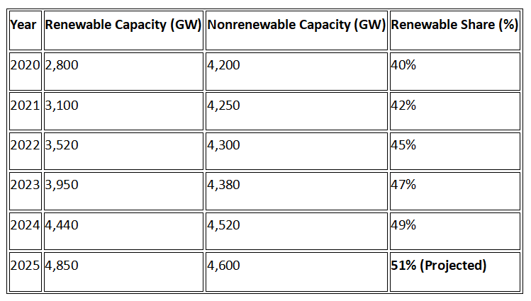 The world order in the power system has entered a measurable, fast-changing epoch. Through rapid expansion of solar and wind power capacity between 2020 and 2024, the global renewable power capacity has increased by some 2,800 GW to approximately 4,448 GW, and is estimated to reach 50% of installed capacity in 2025, the first time renewable energy has done so.