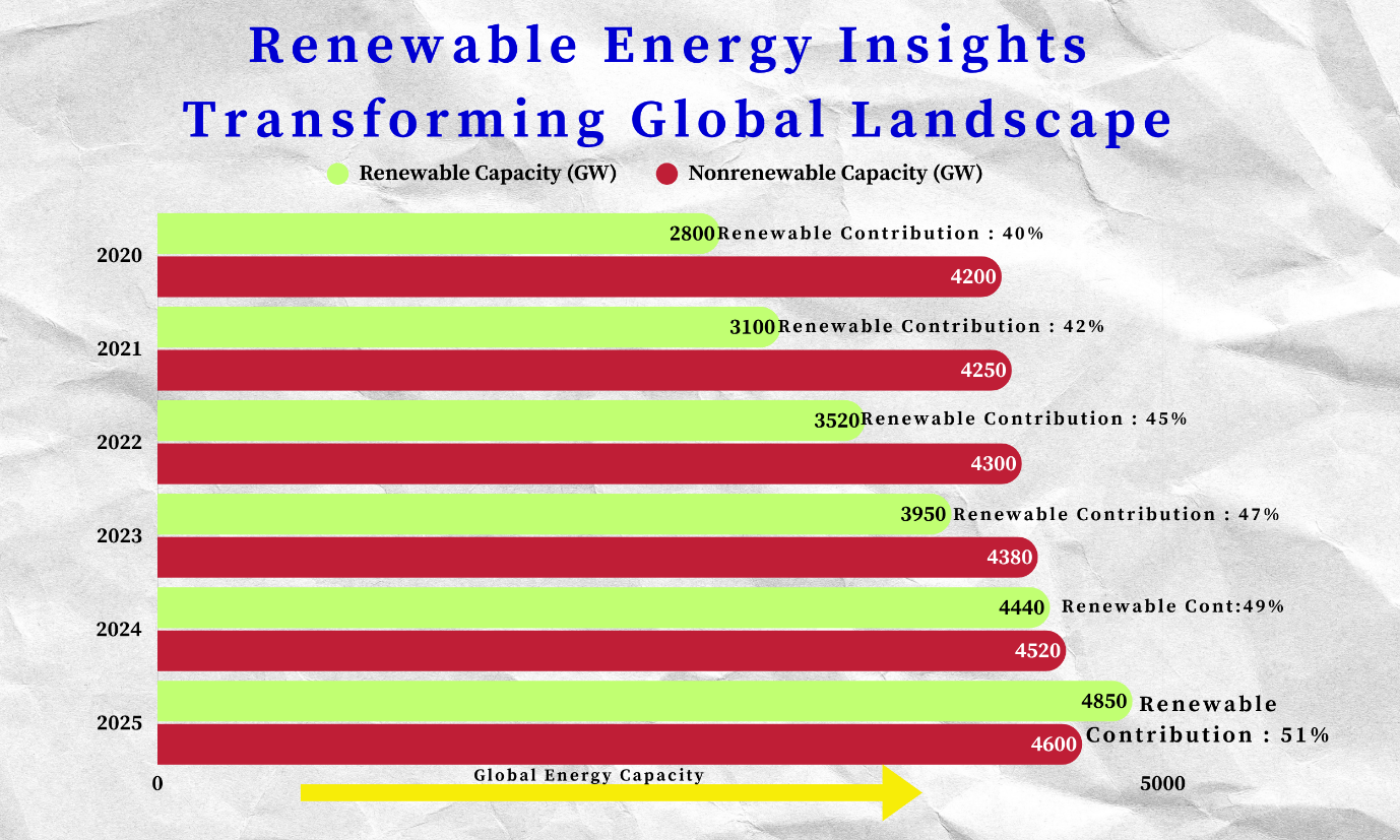 The facts make a very vivid and naked narrative: renewables have found a stage of uncontrolled growth. In the case of visual-nerd.com, the statistics of renewable energy insights worldwide correspond to the most ideal infographic sources, both in the form of visuals of growth by 2020-2025 and in the form of forecasts of growth by 2030. This is where figures are confronted by narrative - the ability to turn crude information into valuable understanding.