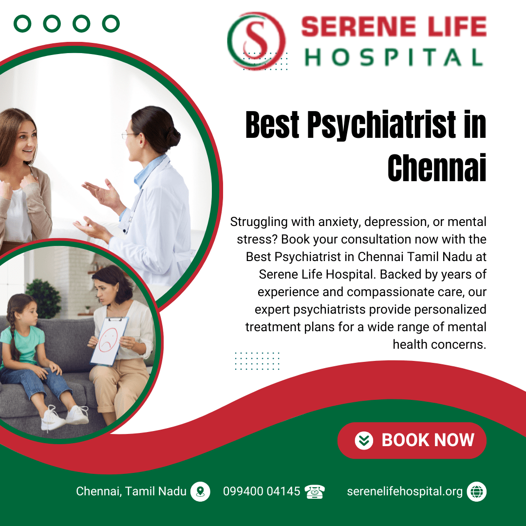 Struggling with anxiety, depression, or mental stress? Book your consultation now with the Best Psychiatrist in Chennai Tamil Nadu at Serene Life Hospital. Backed by years of experience and compassionate care, our expert psychiatrists provide personalized treatment plans for a wide range of mental health concerns. Whether you’re facing emotional challenges, mood disorders, or seeking therapy for long-term wellness, Serene Life Hospital is a trusted choice in Tamil Nadu. We ensure complete privacy, supportive care, and proven therapies in a state-of-the-art setting. Mental health matters — don’t delay the help you deserve. Take the first step toward healing and peace of mind today. Conveniently located in Chennai, we’re here to support your journey toward better mental health.