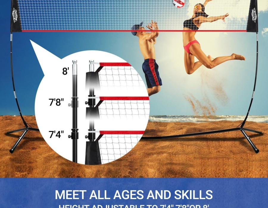 Height Adjustability: Volleyball nets should have adjustable poles to accommodate different playing levels. The official net height for men's volleyball is 7 feet 11 5/8 inches, while for women's volleyball, it's 7 feet 4 1/8 inches. Adjustable poles allow you to easily switch between heights.