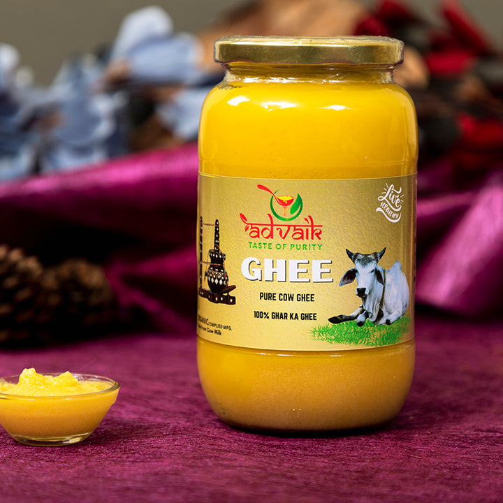 At Advaik, we prioritize traditional methods of making ghee, ensuring that every batch is crafted with care. Our homemade pure cow ghee is made from the milk of healthy cows raised in a stress-free environment, preserving the authentic taste and quality that has been cherished for generations.