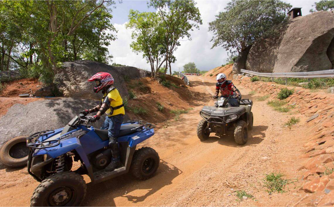 The minimum age requirement for ATV rides is 16 years of age and individuals below the age limit of 18 will have to produce a consent form or permission letter signed by their guardians. You must carry your identification documents like Aadhar Card, driving license or Passport to verify your age. The maximum weight capacity is 113 kilograms . Individuals who are pregnant or suffer from any sort of respiratory problems or any health problems in general are unfortunately not allowed to partake in this adventure.