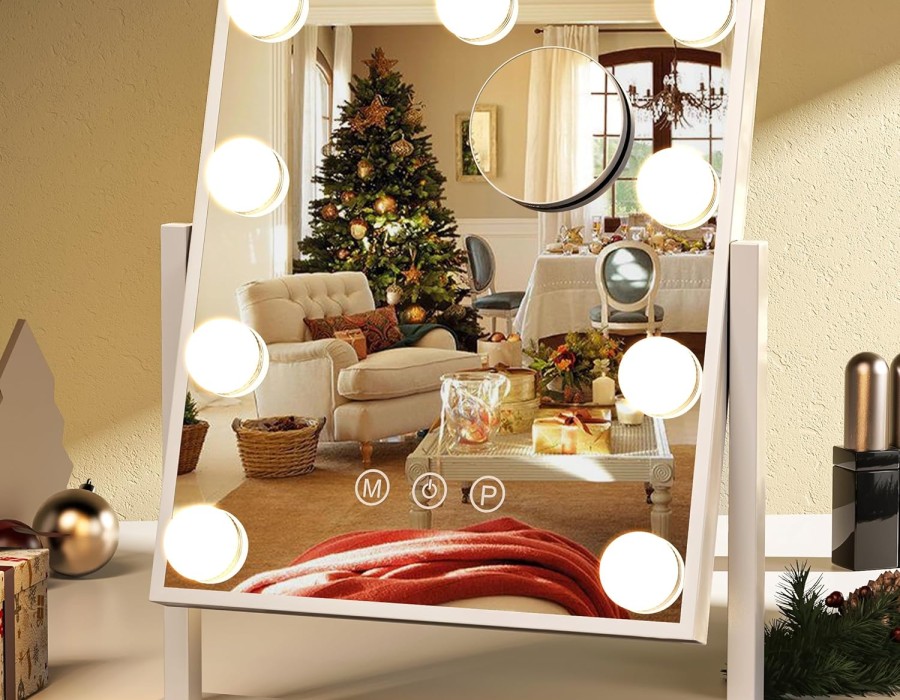 Simplehuman Sensor Mirror: Deze spiegel is bekend om zijn slimme sensortechnologie die de verlichting automatisch aanpast aan de omgevingslichtomstandigheden. Het biedt helder, natuurgetrouw licht en komt in verschillende vergrotingen.