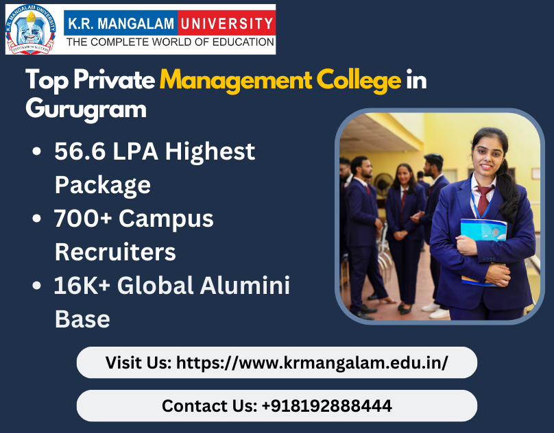 K.R. Mangalam University is recognised as the Top Private Management College in Gurugram, offering world-class education and shaping future leaders with its dynamic and industry-relevant programmes. The university has earned its reputation as the Top Management MBA College and the Best B-School for MBA by consistently delivering exceptional academic outcomes and career opportunities.