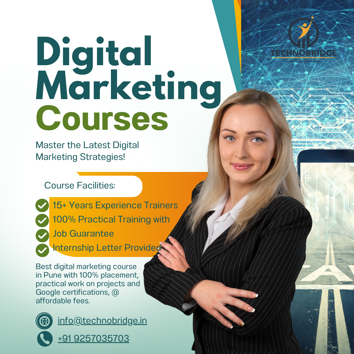 A good institute focuses not only on teaching digital marketing but also on making you employable. Here’s how structured training programs like those offered by TechnoBridge prepare you for the real world: