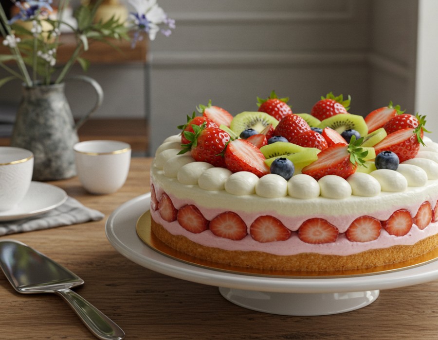 1. Classic Fruit-Topped Fresh Cream Cake