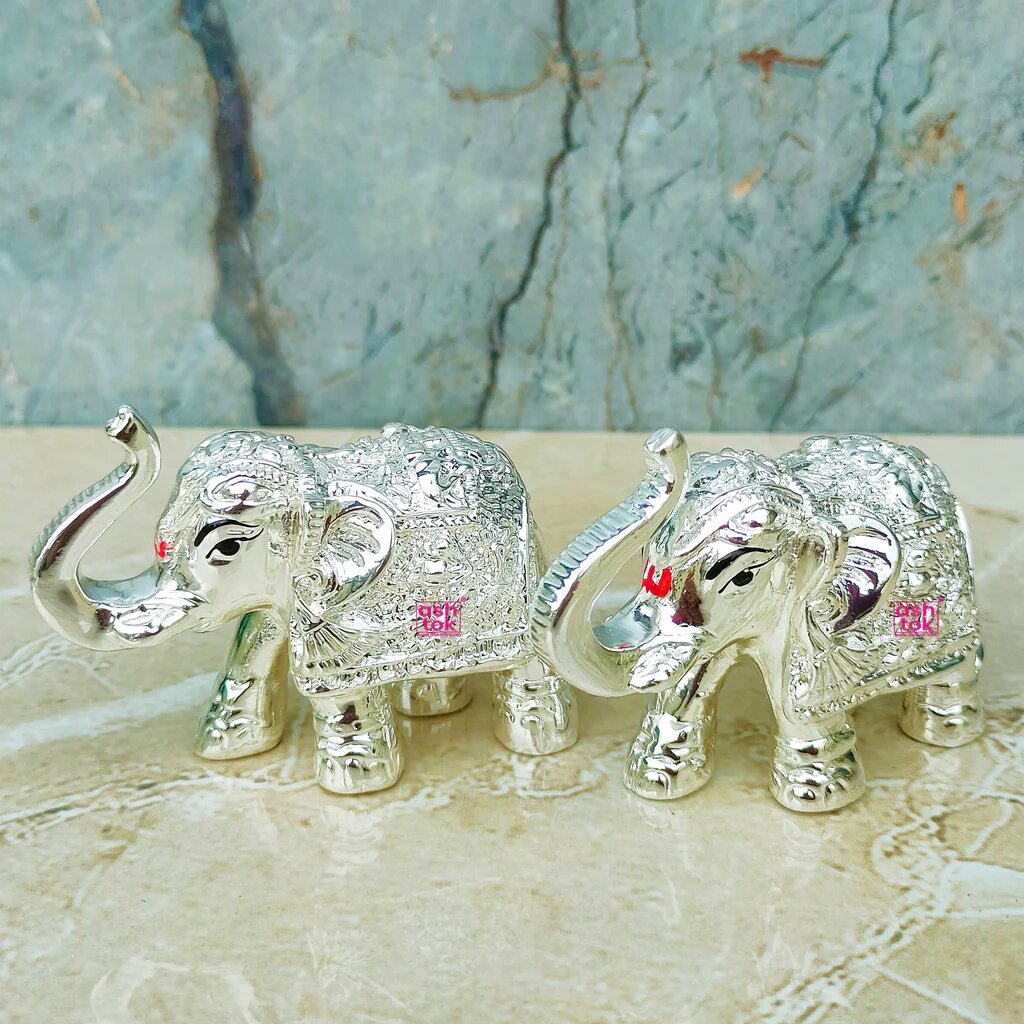 The German Silver Elephant Idol Set is a beautiful combination of traditional symbolism and refined craftsmanship. Whether placed in your living room, pooja space, or work desk, this set of two elephant idols adds a touch of elegance and meaning to your surroundings.