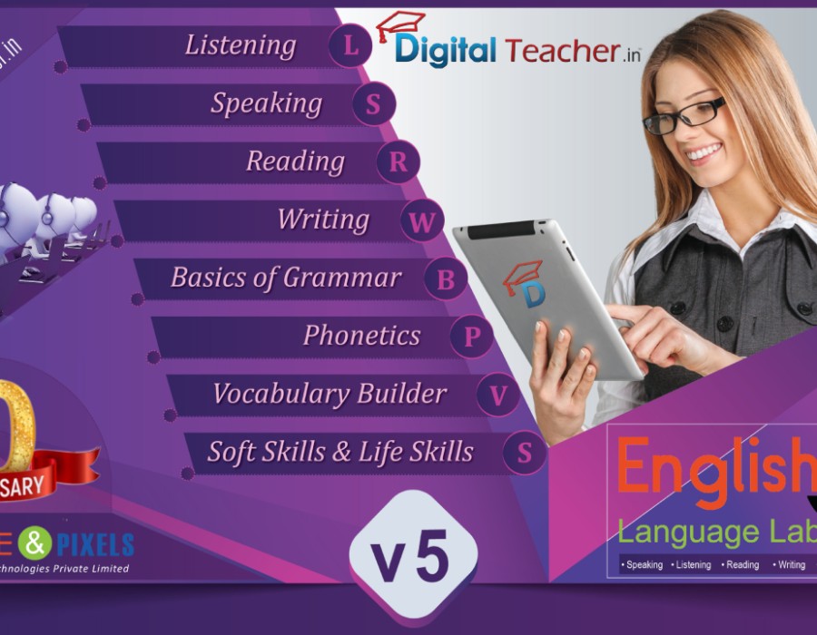 English digital language lab software is especially designed to improve all four key language skills equally: listening, speaking, reading, and writing. as well as Basics of Grammar, Phonetics, Vocabulary Builder, Soft Skills and Life Skills.