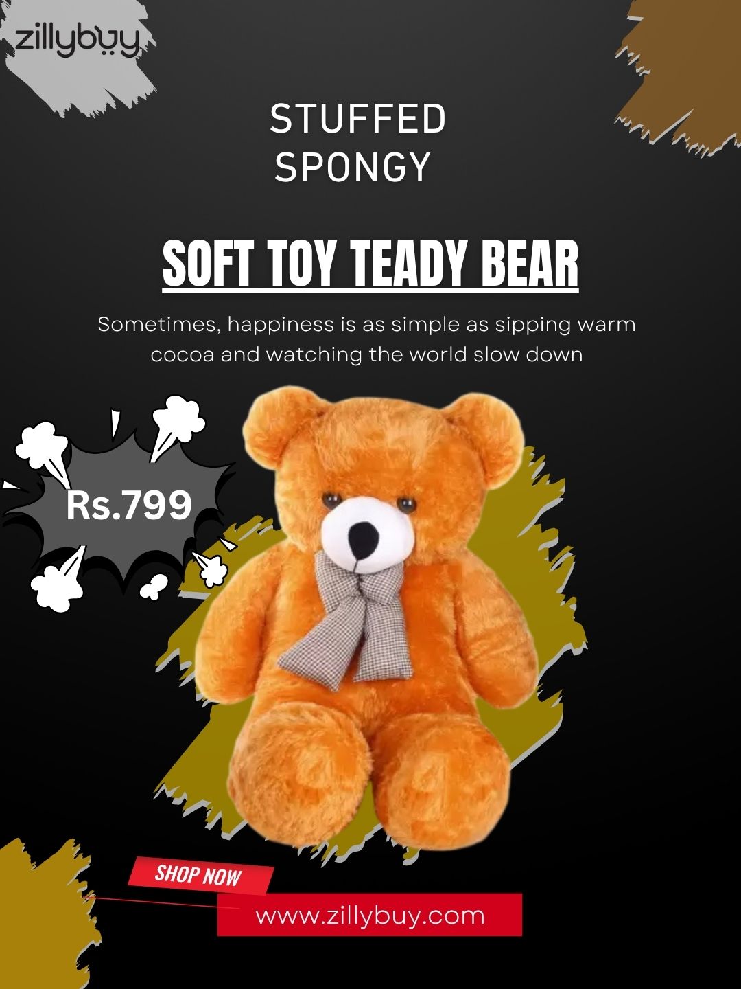 Bring home happiness with this spongy soft teddy bear. Super premium, cuddly, safe & perfect for hugs or gifting someone. Shop your favorite plush now at ZillyBuy. For more information, visit our official website.