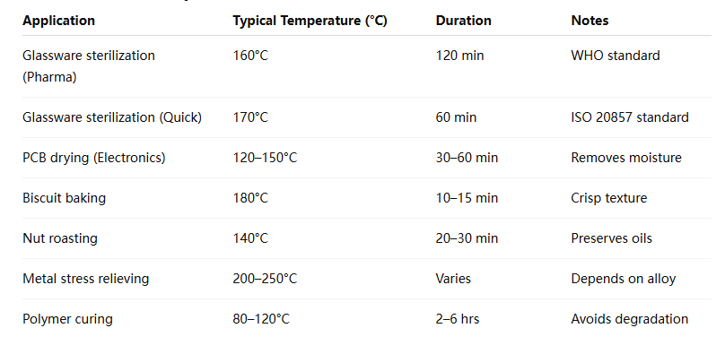 Common Hot Air Oven Temperature Ranges