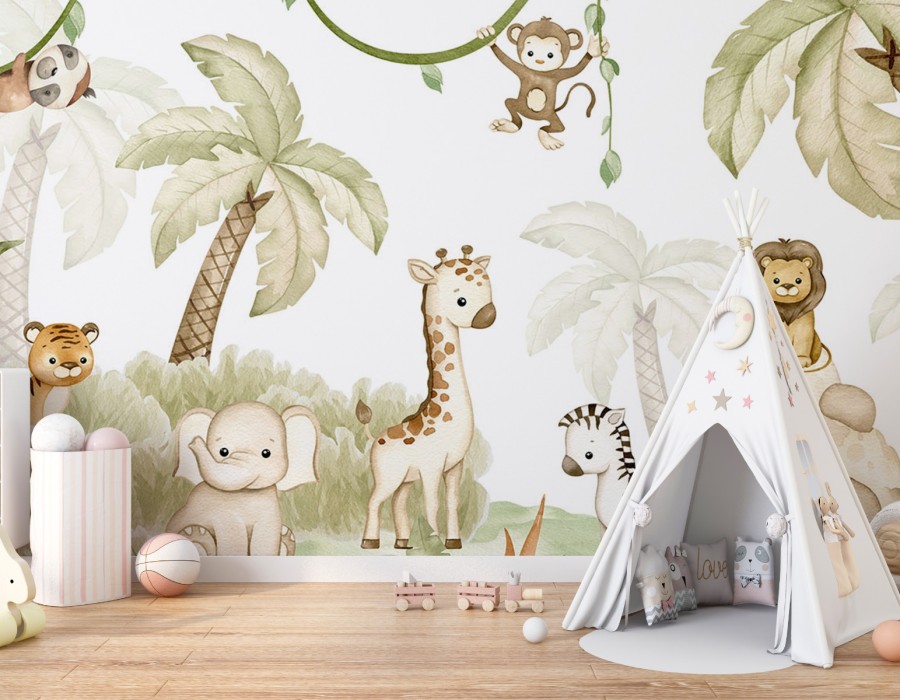 Baby Safari Animals Watercolor Wallpaper