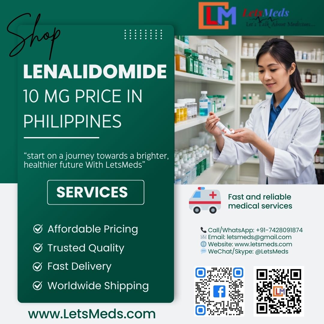 In The Philippines Finding affordable cancer medication can feel like a huge challenge. Prescription drug prices vary a lot. Lenalidomide Tablets are Most prescribed drug for cancer treatment. But Lenalidomide price in Philippines is very high. At LetsMeds, we offer these life saving medicines at lowest price. LetsMeds offer Lenalidomide 10 mg price at a very low cost. We offer multiple strengths of Lenalidomide tablets, including 5 mg, 10 mg, 15 mg, 20 mg or 25 mg at wholesale prices. Lenalidomide is a cancer drug used to treat certain types of blood cancers, including multiple myeloma, follicular lymphoma, and mantle cell lymphoma. so it is importent to buy from trusted sources such as LetsMeds. LetsMeds Specializes in Affordable Pricing, Fast Delivery, Trusted Quality and Seamless Online Ordering across Pilipinas, including Quezon City, Manila, Davao City, Caloocan, Cebu City, Zamboanga City, Taguig, Antipolo, Cavite City, Tagbilaran, Navotas, Malabon, Dagupan sa Pangasinan, Naga sa Camarines Sur, Ormoc, and more. LetsMeds is a Trusted supplier of Lenalidomide 25 mg price in Philippines, offering 24/7 service and home delivery across the world,including China, USA, Philippines, Malaysia, Australia, Europe, Saudi Arabia, Peru, Poland, Thailand, Singapore, Brazil, Russia, Africa, Netherlands, France, Italy, Romania, and more. Contact now to buy Lenalidomide 10 mg or Lenalidomide 25 mg at Best price. Call/WhatsApp/Viber: +91-7428091874 | WeChat/Skype: LetsMeds | Email: [email protected] | Website: www.letsmeds.com.