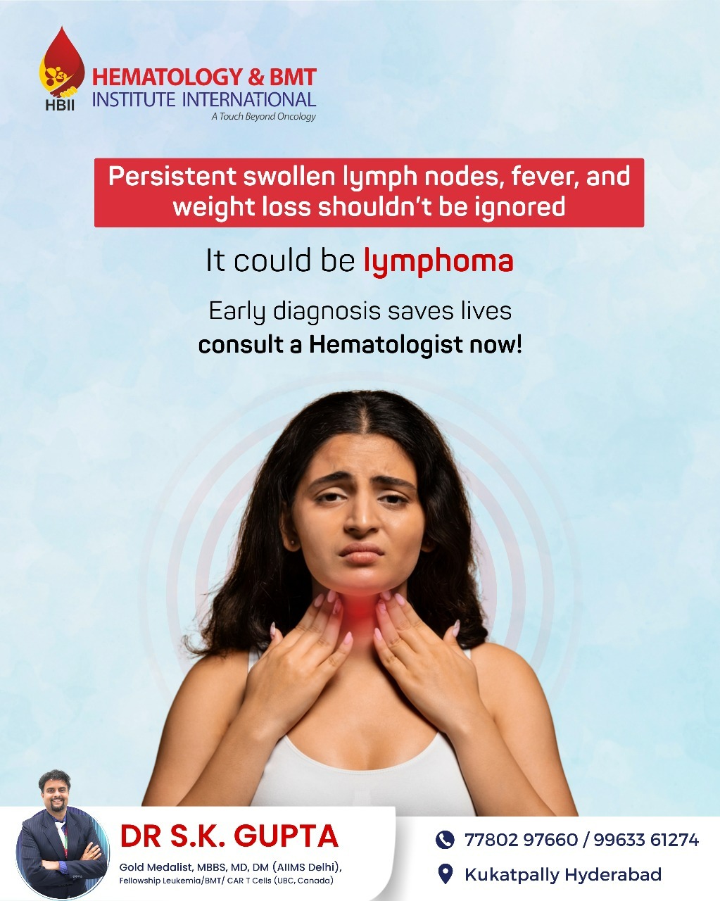 If you are searching for a “Lymphoma dr near me”, look no further than Dr. S.K. Gupta, one of Hyderabad’s most respected hematologists specializing in lymphoma and blood cancers. we provide comprehensive and personalized care for all types of lymphoma, combining advanced medical expertise with compassionate patient support.