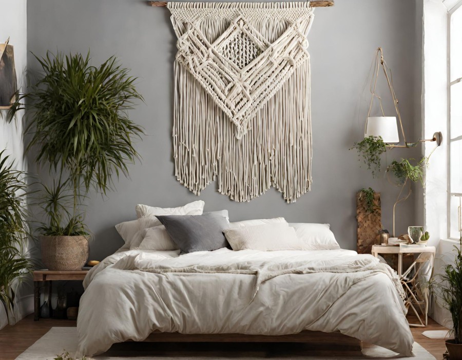 A well-placed Macrame wall hanging can create a serene and calming atmosphere in your bedroom, which is crucial for quality sleep. The natural textures and neutral colors of macrame can promote relaxation and tranquility, helping to ease your mind before bed. A calm mind leads to better sleep, which is essential for overall health as it strengthens the immune system, regulates hormones, and promotes physical and mental recovery.